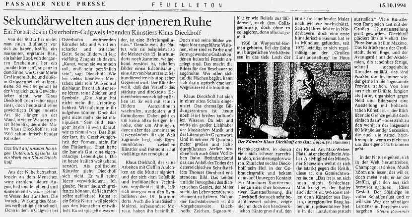Artikel in der Passauer Neue Presse im Oktober 1994